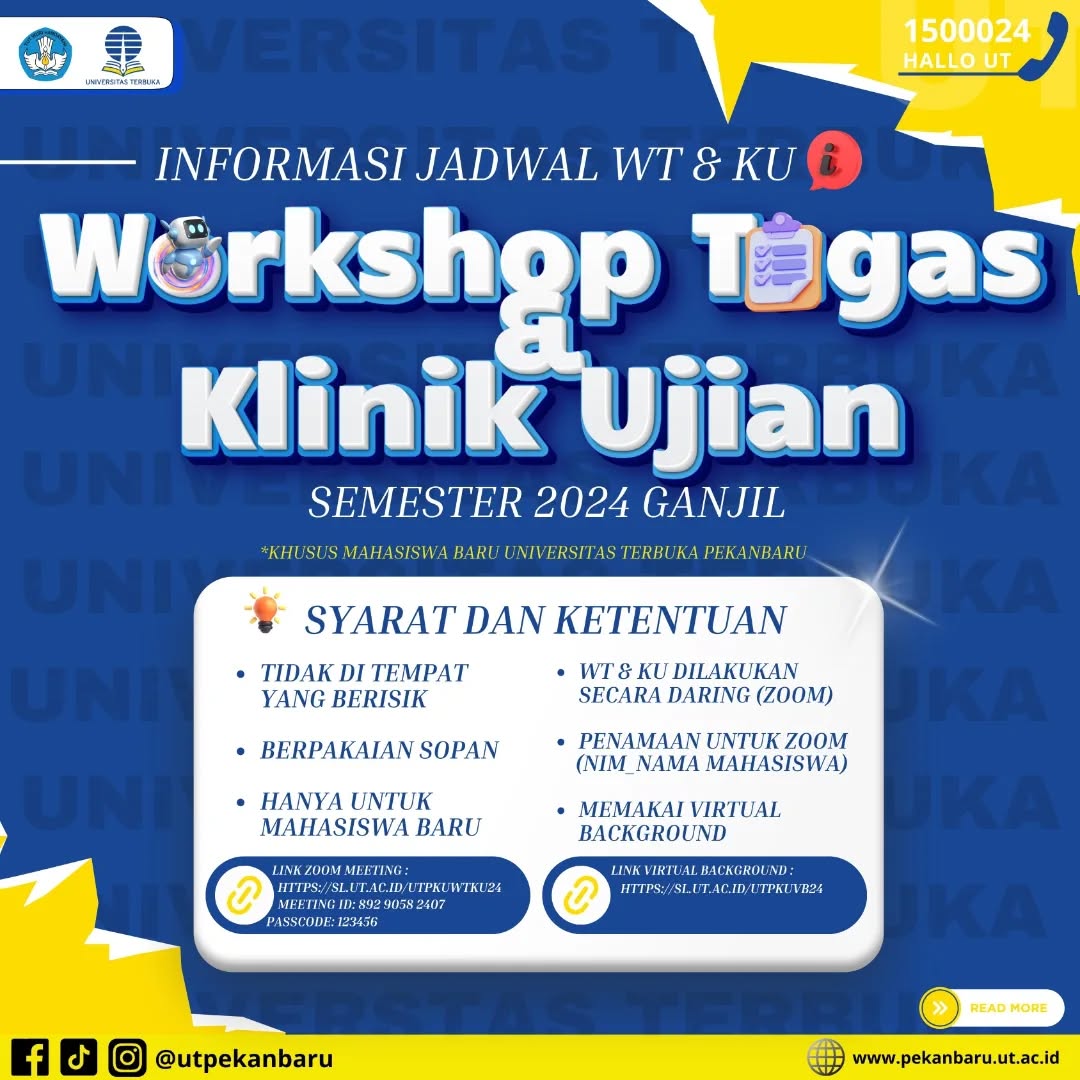 Siapkan diri kalian untuk jadwal Workshop Tugas (WT) dan Klinik Ujian (KU) yang akan datang! Jangan lewatkan kesempatan untuk memperdalam materi dan siap menghadapi ujian.